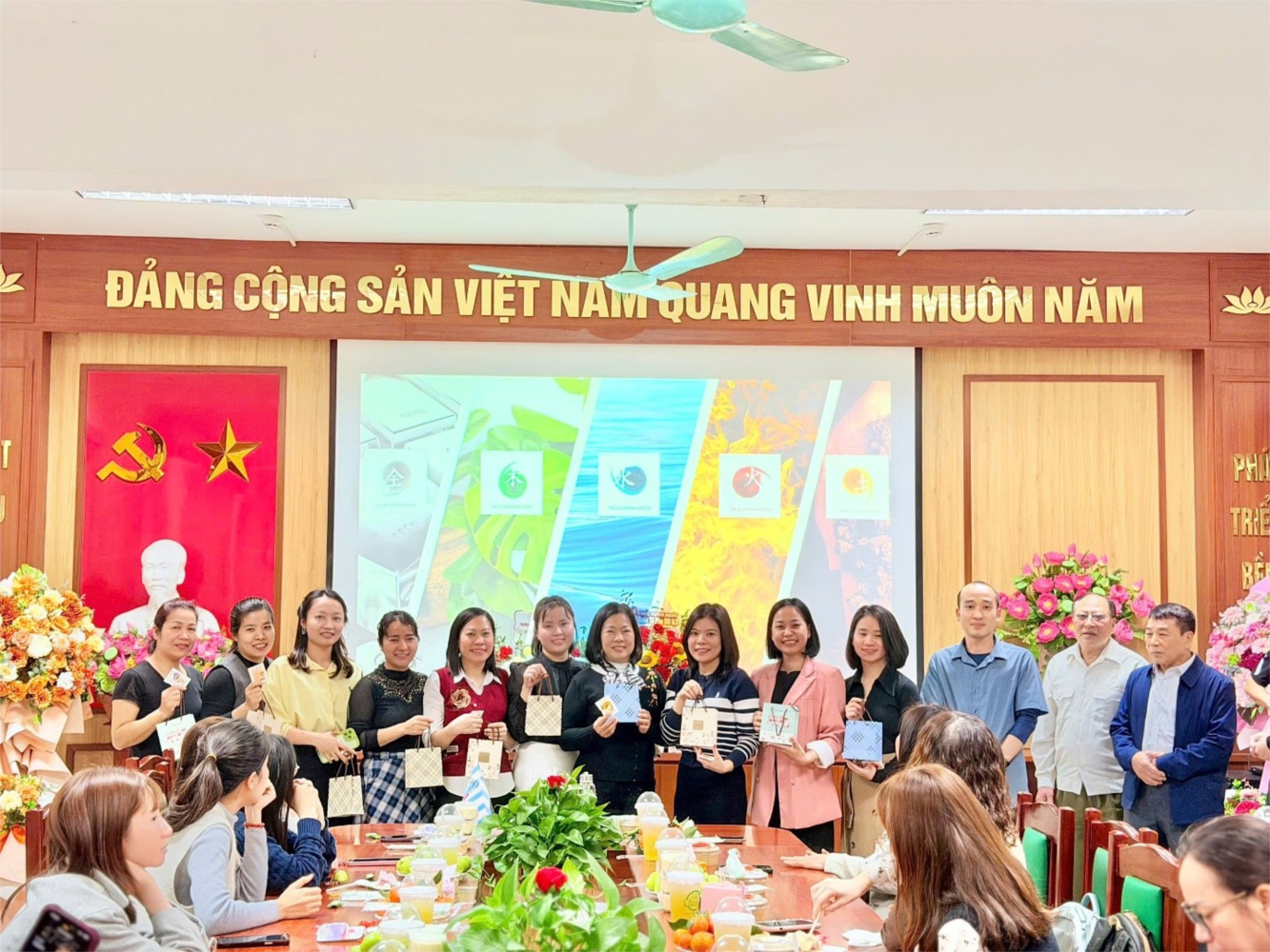 Tại phòng Hội đồng nhà trường, không khí cũng không kém phần phấn khởi. Ban giám hiệu đã tổ chức buổi gặp mặt thân mật, gửi tặng những bó hoa tươi thắm nhất đến các nữ cán bộ, giáo viên, nhân viên – những người phụ nữ "giỏi việc trường, đảm việc nhà", những người đã và đang miệt mài gieo mầm tri thức cho các thế hệ học sinh Thanh Am.